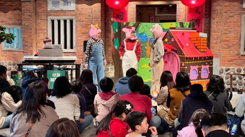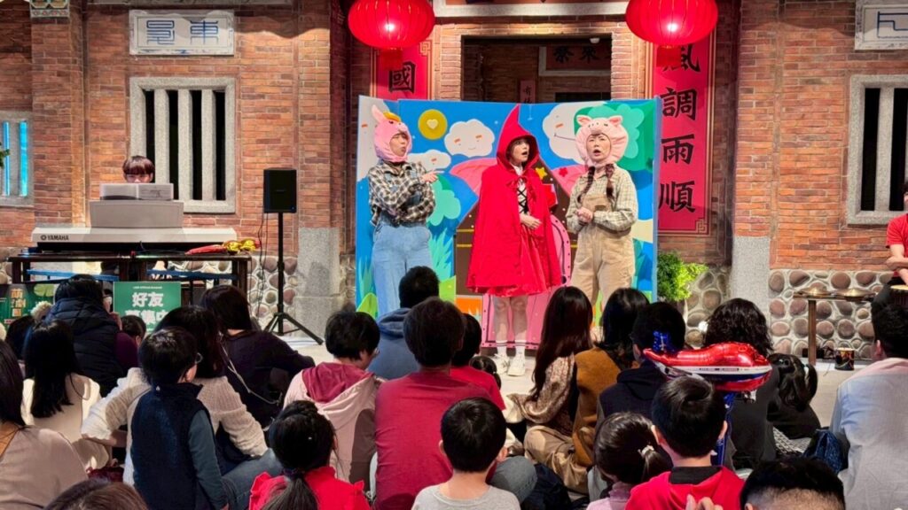 於是,小紅帽邀請外婆和小弟豬一起唱歌、製造熱鬧的聲音。